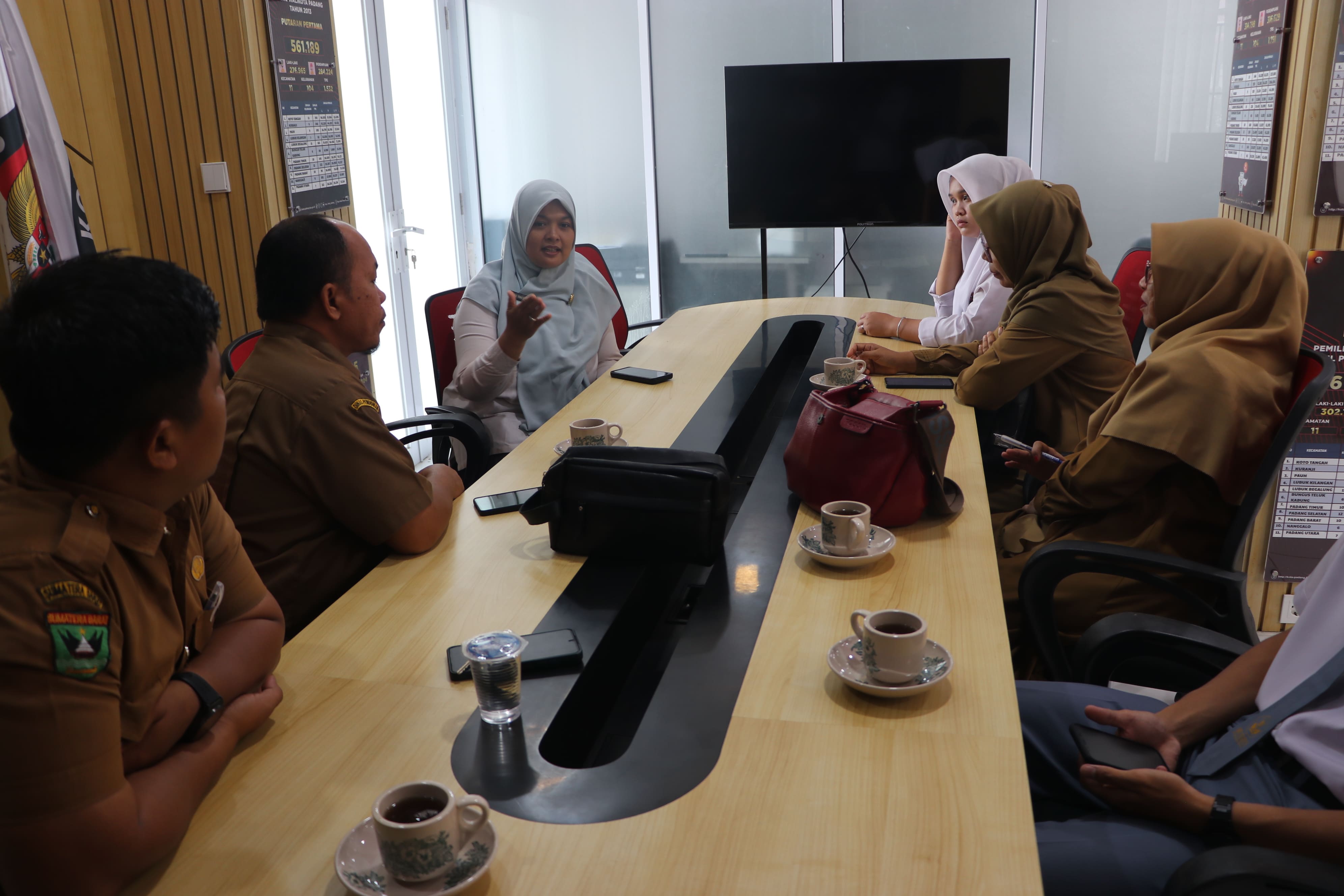 Komisi Pemilihan Umum (KPU) Kota Padang menerima kunjungan dari SMK N 8 Padang dalam rangka koordinasi dan sosialisasi persiapan Pemilihan Ketua OSIS (Pemilos) pada Senin (19/1/2026). Kunjungan ini bertujuan untuk memastikan alur pelaksanaan pesta demokrasi di lingkungan sekolah berjalan sesuai standar kepemiluan. Pertemuan yang berlangsung di Kantor KPU Kota Padang ini dihadiri oleh jajaran guru dan tim kesiswaan SMK N 8 Padang dan disambut langsung oleh Ketua Divisi Sosdiklih, Parmas, dan SDM KPU Kota Padang, Randy Adi Tama, serta Kasubbag Parhubmas dan SDM, Rika Yanita Susanti.