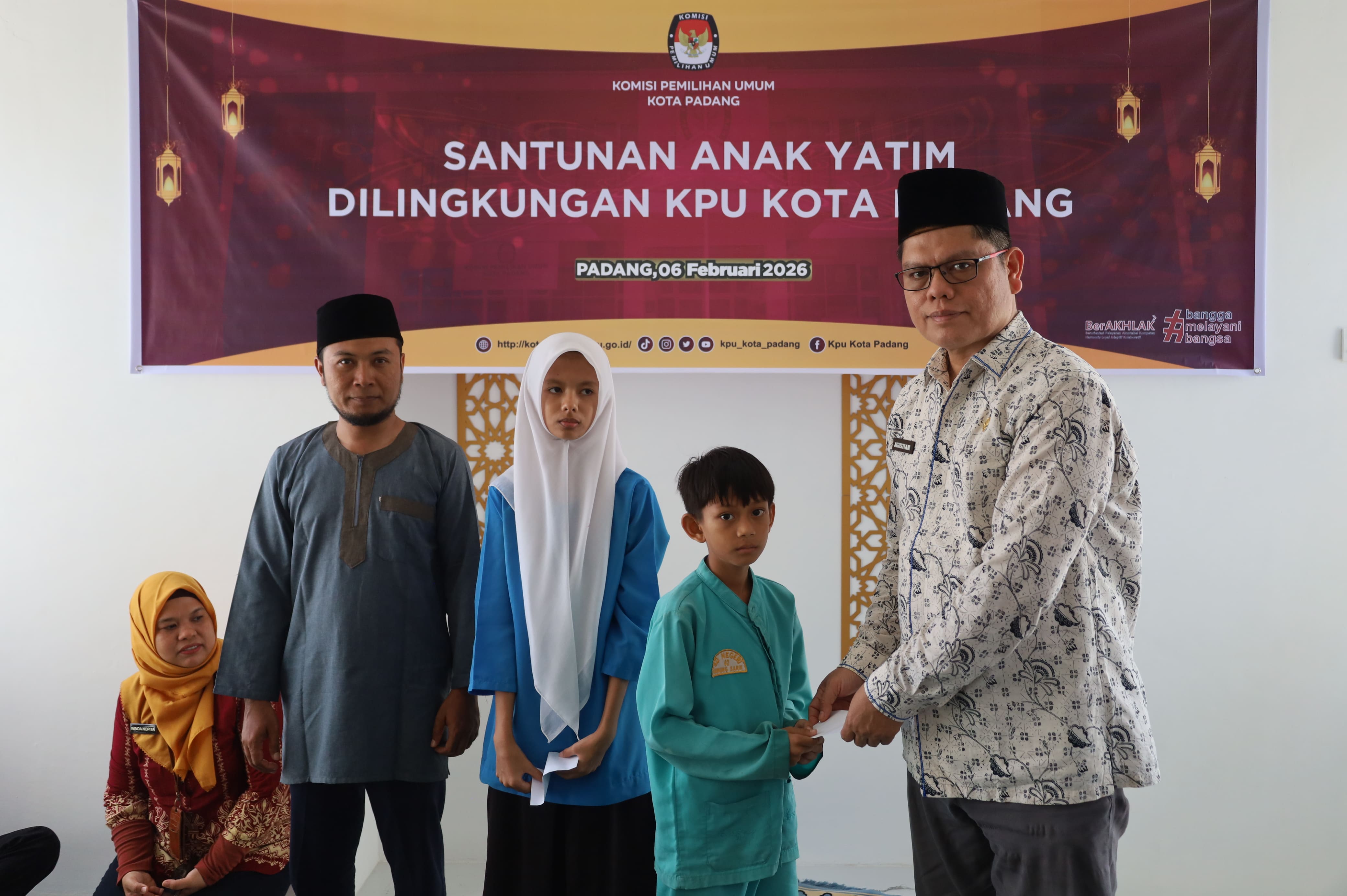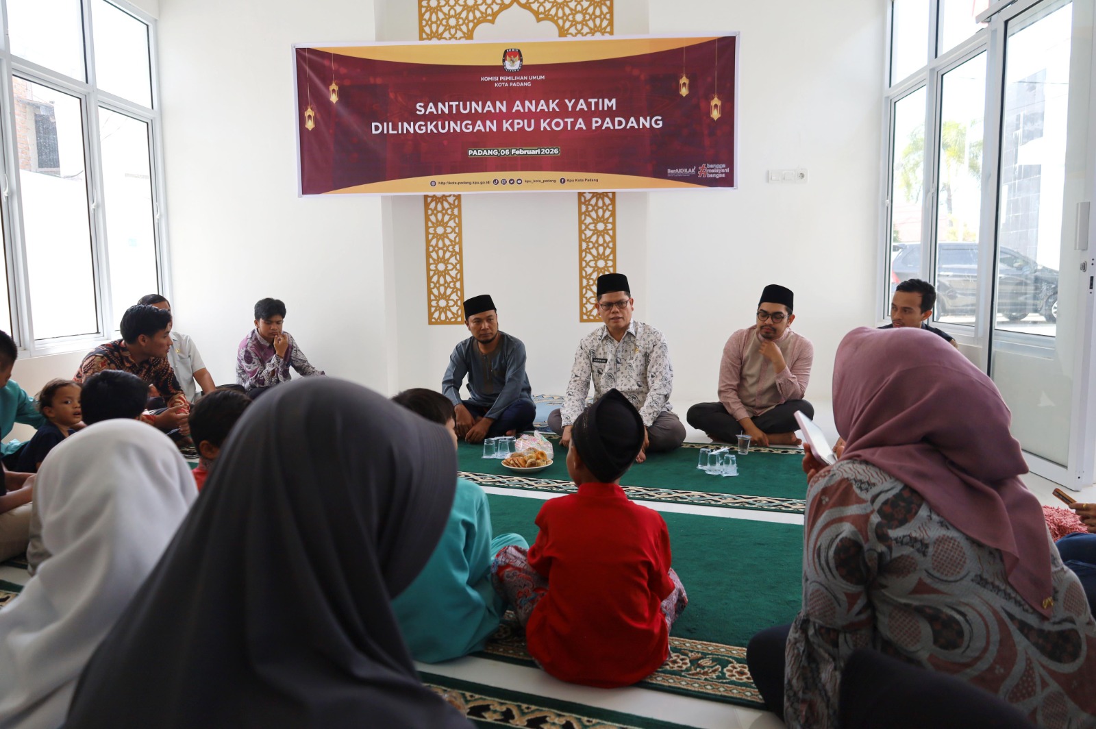Komisi Pemilihan Umum Kota Padang menggelar Santunan dan doa bersama anak yatim bersama jajaran komisioner dan sekretariat KPU Kota Padang. Kegiatan ini berlangsung di Mushola Istiqomah KPU Kota Padang pada Jumat (6/2/2026).
