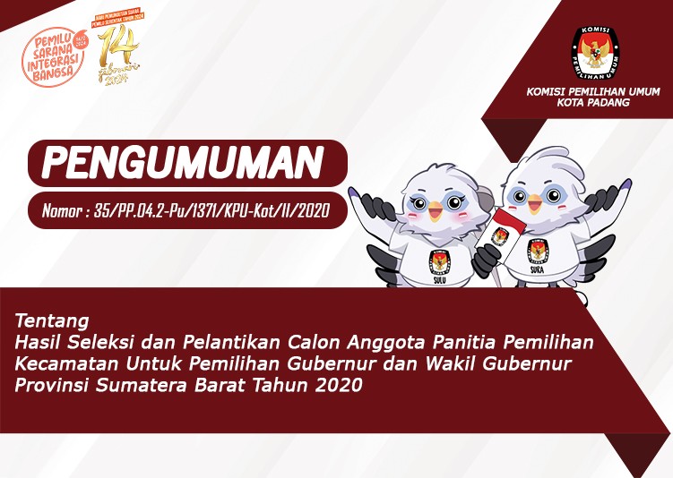 Pengumuman Hasil Seleksi dan Pelantikan Calon Anggota Panitia Pemilihan Kecamatan Untuk Pemilihan Gubernur dan Wakil Gubernur Provinsi Sumatera Barat Tahun 2020
