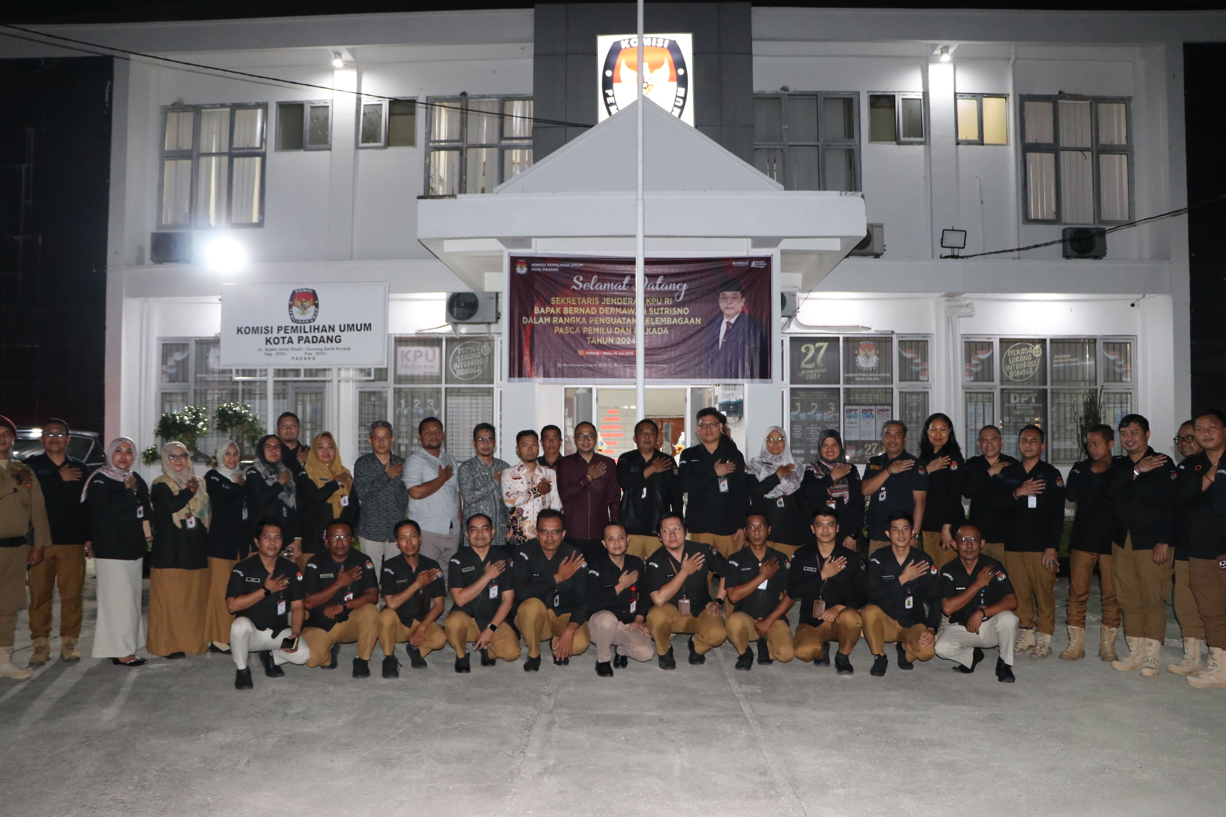 Sekretaris Jenderal Komisi Pemilihan Umum Republik Indonesia, Bernad Dermawan Sutrisno, Melakukan Kunjungan Kerja Ke KPU Kota Padang pada Rabu, 16 Juli 2025. Kegiatan ini dalam rangka penguatan kelembagaan pasca pelaksanaan Pemilu dan Pilkada Serentak Tahun 2024.