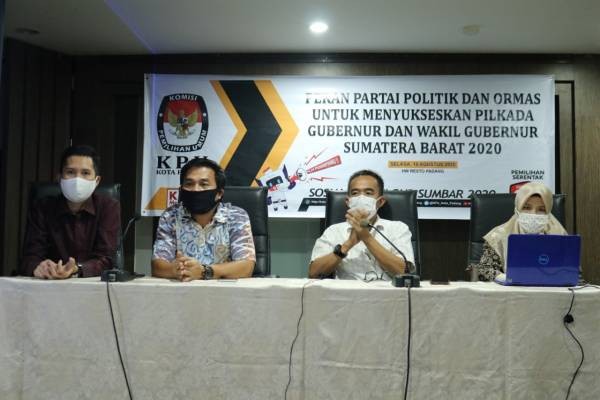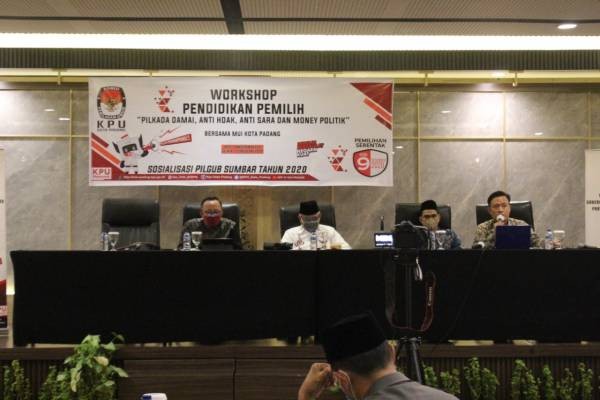 PADANG-Komisi Pemilihan Umum Kota Padang bersama dengan Majelis Ulama Indonesia Kota Padang menggelar sosialisasi dalam tahapan Pemilihan Gubernur dan Wakil Gubernur Provinsi Sumatera Barat Tahun 2020, Kegiatan sosialisasi yang bertema Workshop Pendidikan Pemilih " Pilkada Damai anti Hoax, anti sara, money politik digelar di Hotel Pangeran beach pada hari Selasa (25/08/2020) pada pukul 10.00 Wib. Peserta yang hadir sebanyak 20 orang dari MUI, penerapan pembatasan pertemuan sesuai dengan protokol kesehatan dan pembatasan pertemuan yang ditetapkan oleh KPU. Yang menjadi narasumber di dalam sosialisasi ini adalah Ketua MUI Duski Samad dan Muhammad Taufik Akedemisi UIN Imam Bonjol Padang dan hadir juga Komisioner KPU Kota Padang Arianto Divisi Prodgram data, Azwirman Divisi Hukum,Amid Muttaqim Divisi Teknis yang bertindak sebagai Moderator dan Sekretaris KPU Kota Padang Lucky Dharma Yuli. Acara dimulai dengan pembukaan dan sambutan yang diberikan oleh Komisioner KPU Kota Padang Arianto yang mewakili sambutan dari Ketua KPU Kota Padang Riki Eka Putra Yang berhalangan hadir. Arianto manyampaikan dalam sambutannya dengan adanya Pendidikan Pemilih bersama MUI kedepannya dapat meningkatkan partisapasi dalam menyukseskan pemilihan serentak yang nanti akan dilaksanakan pada 9 Desember nanti, peran ulama dalam masyarakat sangatlah penting dalam menyukseskan demokrasi pemilihan ini, KPU akan jauh lebih baik dengan didukung oleh semua pihak khususnya para ulama, karena ulama dan ustad mempunyai peran penting dalam masyarakat. Duski Samad Ketua MUI Kota Padang dalam materinya ULAMA DALAM PILKADA BADUNSANAK dalam kesempatannya menyampaikan Komisi Pemilihan Umum (KPU) sudah beberapa kali mengunakantagline PILKADA BADUNSANAK, maknanya melakukan Pilkada dalam suasana hidup berbasis kearifan lokal dunsanak, keluarga besar saling memuliakan, santun dan damai. MUI dan tokoh umat dalam kedudukan, fungsi dan perannya, sebagai pengisi mimbar umat, jelas perlu terlibat dan dilibatkan dalam proses Pilkada sebagai mesin sosial penghasil pemimpin. Workshop Pilkada Badunsanak, anti hoax dan damai, yang dilakukan KPU Kota Padang bekerjasama dengan MUI Kota Padang, adalah kerja kolektif untuk kepentingan bangsa.Ulama sebagai key point perubahan dan pencerahan masyarakat berkewajiban secaramoral mendukung Pemilihan Kepala Daerah sebagai jalan, wasilah proses kepemimpinan daerah, walau belum ideal dan disana-sininya terdengar nyaring Suara-suara berisik, seperti politik uang, hate speach terhadap calon pemimpin, hoax dan prilaku tercela lainnya. Justru ulama diperlukan untuk memastikan bahwa kebohongan (hoax), berita palsu, ujaran kebencian, politik uang, dan saling membenci, adalah sikap, perbuatan, akhlak tercela yang dikecam Islam. Ulama tentu Akan menjadi tokoh terdepan untuk menjadi contoh teladan pemilih bertanggung Jawab, warga berakhlak mulia, dan memberikan tasuhiyah kepada pasangan calon dan timnya untuk menjaga kebaikan, fair, jujur dan taat aturan dalam kontestasi. Dalam melakukan tugas-tugas keumatan, melalui khutbah, dakwah dan taushiyah, yang melekat dengan ulama diharapkan dapat menyertakan pencerahan dan pandangan netral, jujur dan benar tentang arti penting kepemimpinan,keiikutsertaan dalam proses pemilihannya (Pilkada), dan kewajiban untuk mentaati aturan (regulasi). Ucapnya. Ulama diharapkan pula tetap pada misi keumatan, pengayom umat dan menjadi solusi dari masalah umat. Ulama dalam Pilkada, tetaplah sebagai ulama, dan kalaupun ada di salah satu poros calon, jangan guna mimbar umat di luar koridor aturan dan akhlak mulia. Tambah Duski Samad Diakhir kata Duski samad menyampaikan serta mengajak seluruh Ulama dan tokoh agama dipahami masyarakat orang yang terdepan dalam akhlak mulia, orang yang sama kata dan perbuatan, orang baik dan tidak mudah terjebak pada pilaku buruk yang mencemarkan dirinya, agama dan bangsanya. Kejahatan, kebejatan dan kerusakan yang ditimbulkan oleh berita bohong (hoax), ujaran kebencian di medsos, prilaku “silangkaneh” di group-group medsos, atas nama nitizen, trending topic, dan apapun namanya adalah Pandemi virus Pilkada badunsanak, dimana ulama dan tokoh umat wajib tidak terjakitinya. Terkutuklah orang yang hanya bisa berkata, tidak melakukannya (QS. As Shaf/61:3). Benteng terakhir dari Penegakkan akhlak mulia dalam Pilkada dan semua sistim kehidupan adalah ulama dan tokoh umat. Ayo ulama dan tokoh umat di negeri mari kita dukung dan Tablighkan PILKADA BADUNSANAK ANTI HOAX, UJARAN KEBENCIAN DAN KECURANGAN. Manfaat pemilu adalah sebagai sarana untuk perwujudan kedaulatan rakyat dan peran ulama disini adalah untuk memberikan kesadaran kepada masyakat untuk menggunakan hak pilihnya sebagaimana ulama merupakan panutan dalam masyarakat dan dalam hal ini dalam menyukseskan pemilihan ulama merupakan peran penting. Situasi yang terjadi saat ini kita melaksanakan pilkada dalam masa pandemi dan hal tersebut akan berpengaruh sekali pada partisipasi pemilih nantinya dan daripada itu mari kita ajak masyarakat untuk tetap menggunakan hak pilihnya dengan protokol kesehatan. M.taufik juga menjelaskan bahwa bahaya dari hoax, anti ras dan politik uang tidak hanya merusak akal sehat calon pemimpin tapi juga mendelegitimasi proses penyelenggaraan pemilu dan lebih parah lagi dapat merusak kerukunan masyarakat yang mengarah pada disentegrasi bangsa. Ada 4 peran ulama dalam meningkatkan kualitas pemilu yaitu 1. Kemapuan dalam mengusai teknik persuasif 2.kemampuan teknik komunikasi 3.kemampuan teknik fasilitas 4.kemampuan teknil motivasi dan tauladan kepemimpinan dari Empat peran tersebut mari kita mengajak masyarakat untuk menyukseskan pemilihan Gubernur dan Wakil Gubernur Provinsi Sumatera Barat Tahun 2020 dengan mengajak masyarakat untuk datang ke TPS pada Rabu 9 Desember nanti, Muhammad Taufik".(Media-Center.1)