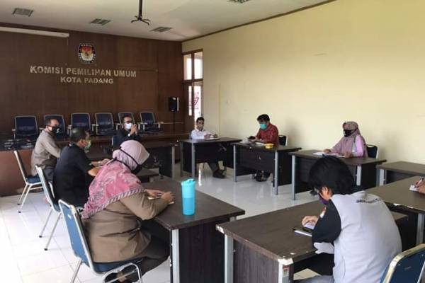 PADANG-Komisi Pemilihan Umum (KPU) Provinsi Sumatera Barat melaksanakan rapat kerja (Raker) dan konsultasi persiapan Pilkada yang akan digelar pada desembar mendatang, rapat dilakukan melalui via jaringan menggunakan aplikasi metting yang digelar pada hari kamis (11/06/2020) dikuti oleh seluruh KPU Kab/Kota divisi SDM dan Kasubag Se-Sumatera Barat. Raker dihadiri langsung oleh anggota KPU RI Ilham Saputra beserta seluruh jajaran komisioner KPU Sumatera Barat dan Komisioner KPU Kab/Kota dengan topik yang dibahas pada raker tersebut tentang persiapan dan pengaktifan kembali PPK dan PPS. Atika Triana Komisioner KPU Kota Padang divisi Parmas yang turut menghadiri raker menyampaikan bahwa ada menyampaikan 12 poin penting dari hasil rapat yang harus diberlakukan untuk persiapan pilkada yang akan digelar yaitu hasil rapat koordinasi dalam jaringan kpu prov dan kpu ri bersama kpu kab kota sesumatera barat tersebut yaitu, 1.SE 19 tahun 2020 untk pedoman bagi KPU,KPU Provinsi KPU kab/kota menjaga keberlangsungan pelaksanaan tugas dan fungsi dalam penyelenggaraan pemerintahan untuk beradaptasi dengan tatanan normal baru produktif dan aman Covid19.Setiap satker KPU harus melakukan persiapan melakukan kembali kegiatan dimasa new normal ini. 2. Menindaklanjuti SE 19 tahun 2020 dengan membe ntuk struktur organisasi Tim Penanganan Covid 19 disetiap satker KPU. 3.Memastikan WFO dan WFH mempunyai capaian yang dapat di pertanggungjawabkan baik itu kepada BPK. 4.Komisioner harus menjadi rule model bagi sekretariat dalam pelaksanaan kegiatan dan kedisipilinan bekerja.Bekerja sepenuh waktu menjadi komitmen yang harus diimplementasikan dan dipertanggungjawabkan. 5.Sambil menunggu PKPU Tahapan dan Jadwal keluar melakukan koordinasi terkait dengan pembentukan sekretariat pps dan para stakeholder . 6 untuk Pengaktifan Badan Adhoc penetapannya berpedoman pada PKPU tahapan dan jadwal 7.KPU RI akan menyiapkan surat pernyataan sehat khusus bagi Badan Adhoc terkait dg riwayat penyakit yg diderita. (Dalam hal ini KPU Kota Padang mengusulkan untuk menambahkan pernyataan dalam surat pernyataan yg akan diturunkan KPU RI berisi tentang *bersedia melaksanakan tahapan dalam masa pandemi dengan menggunakan protokol kesehatan covi19* 8.SE Mekanisme Pelantikan dan Pengaktifan kembali PPK dan PPS juga mekanisme PAW akan segera dikirimkan. 9.Bagi PPK dan PPS yang mengundurkan diri harus membuat surat pengunduran diri bermaterai yang diajukan ke kpu. Kpu kab kota memanggil calon PAW untuk kesiapan calon penyelenggara. 10.Koordinasi dan komunikasi dalam upaya bekerjasama dengan pihak pemko utk melakukan rapid tes gratis secara massal untuk penyelenggara badan adhoc dengan pertimbangan antara lain : a. Menjadi daerah rawan yg memiliki tingkat penyebaran covid19 tinggi b.Banyaknya PPK dan PPS yang berumur diatas 45 th. 11.Berkoordinasi denganPemda setempat untuk meminta informasi pemetaan daerah yg rawan terhadap penyebaran covid 19. 12.Pembentukan PPS paling lama 7 hari dan Penetapan juga Penandatanganan Fakta Integritas sesuai SK 169 . Atika Triana menambahkan "Dalam rapat tersebut KPU Kota Padang memberikan usulan kepada KPU RI untuk memberikan surat pernyataan yang akan diturunkan oleh KPU RI yang berisi tentang ketersediaan melaksanakan tahapan dalam masa pandemi dengan menggunakan protokol kesehatan covid-19.(Media-Center.1)