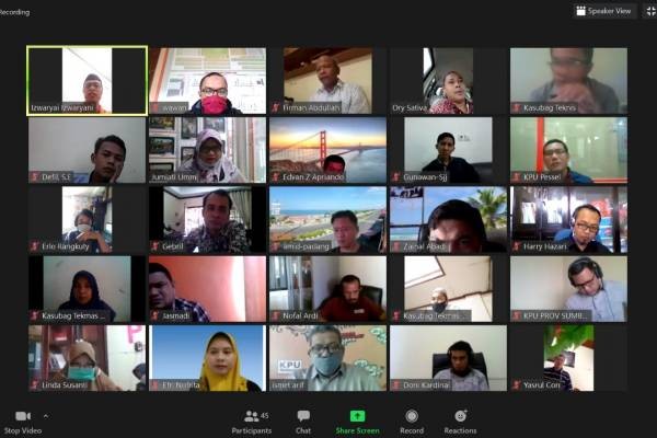 KPU padang- Komisi Pemilihan Umum (KPU) Provinsi Sumatera Barat fasilitasi KPU Kabupaten/Kota se Sumatera Barat mengikuti Training Kelas Virtual Kehumasan untuk meningkatkan kapasitas sumber daya pengelola website dan media sosial dalam mengupdate informasi secara berkala, Sabtu (16/06/2020) Mengingat pandemi covid 19 ini tidak memungkinkan pelaksanaan pelatihan secara tatap muka maka pelatihan tersebut dilaksanakan secara online melalui aplikasi zoom meeting . Kelas virtual kehumasan tersebut menghadirkan pembicara Antony Lee, seorang editor politik dan hukum Harian Kompas yang menyampaikan Materi pelatihan seputar peningkatan kemampuan penulisan berita dan jurnalistik. Peserta training yang mengikuti acara ini sebanyak 75 orang yang terdiri dari Komisioner dan Sekretariat KPU Provinsi/Kabupaten/Kota se-Sumatera Barat. Dengan adanya pelatihan tersebut diharapkan dapat menambah ilmu serta meningkatkan kemampuan personil Subbagian Teknis dan Hupmas KPU Kota Padang dalam menyajikan berita dan informasi Pemilu, sebagai penyedia informasi kita berharap KPU Kota Padang sebagai satker KPU di ringkat Kota dapat mempersiapkan tulisan/konten yang menarik dengan data yang valid. KPU padang- Komisi Pemilihan Umum (KPU) Provinsi Sumatera Barat fasilitasi KPU Kabupaten/Kota se Sumatera Barat mengikuti Training Kelas Virtual Kehumasan untuk meningkatkan kapasitas sumber daya pengelola website dan media sosial dalam mengupdate informasi secara berkala, Sabtu (16/06). Mengingat pandemi covid 19 ini tidak memungkinkan pelaksanaan pelatihan secara tatap muka maka pelatihan tersebut dilaksanakan secara online melalui aplikasi zoom meeting . Kelas virtual kehumasan tersebut menghadirkan pembicara Antony Lee, seorang editor politik dan hukum Harian Kompas yang menyampaikan Materi pelatihan seputar peningkatan kemampuan penulisan berita dan jurnalistik. Peserta training yang mengikuti acara ini sebanyak 75 orang yang terdiri dari Komisioner dan Sekretariat KPU Provinsi/Kabupaten/Kota se-Sumatera Barat. Dengan adanya pelatihan tersebut diharapkan dapat menambah ilmu serta meningkatkan kemampuan personil Subbagian Teknis dan Hupmas KPU Kota Padang dalam menyajikan berita dan informasi Pemilu, sebagai penyedia informasi kita berharap KPU Kota Padang sebagai satker KPU di ringkat Kota dapat mempersiapkan tulisan/konten yang menarik dengan data yang valid.(Media-Center.1)