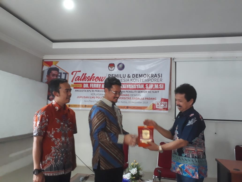 PADANG- Rabu (18/12/19) Hadir 14 Orang Pengurus OSIS Dan MPK SMA PGRI 1 Padang Di RPP KPU Kota Padang Di Gunung Sariak Kuranji Padang Untuk Belajar Pemilu Dan Demokrasi Dan Implementasi Dalam Pemilos. Atika Triana Ketua Divisi Sosialisasi, Pendidikan Pemilih Dan Parmas Menjelaskan Bahwa Kehadiran Adik Adik Di KPU Padang Untuk Belajar Penyelenggaraan Pemilos Sudah Tepat, Karna KPU Lembaga Yg Tugas Utamanya Menyelenggarakan Pemilu, Kita Tidak Hanya Membantu Secara Teknis Prosedur, Tapi KPU Juga Berkepentingan Bagaimana Adik Adik Mengetahui Pemilu Secara Subtantif, Sehingga Memiliki Kesadaran Tentang Penting Pemilu Dan Menggunakan Hak Pilih. Pada Kesempatan Tersebut Ketua Divisi Teknis Amid Muttaqin Menambahkan Bahwa Salah Subtansi Pemilu Itu Adalah Pemilih Dapat Menggunaka Hak Pilih Secara Merdeka Tanpa Ada Tekanan Maupun Intimidasi Dari Peserta Maupun Penyelenggara, Kemudian Kita Harapkan Adik Adik Cermat Menerima Informasi Berita Berita, Karna Berita Hoax Dimedsos Sangat Berkembang, Carilah Informasi Dari Sumber Utamanya Seperti Web KPU Kota Padang Atau Medsos Dan Media2 Yang Terverifikasi Sedangkan Teknis Pemilos Dijelaskan Oleh Kasubag Teknis Rino Sutrisno, Beliau Mengatakan Secara Umum Prosedur Teknis Pemilu Disekolah Dapat Meniru Proses Pemilos, Kita Menawarkan Bagaimana Dalam Pemilos Di SMA PGRI 1 Padang Kita Buka Peluang Bagi Calon Independen, Nanti Diatur Bagaimana Tata Cara Bagi Siswa Ingin Menjadi Calon Indepnden Tanpa Harus Mendapatkan Dukuang Dari Ketua Ketua Kelas, Tapi Cukup Dukungan Perseorangan Misalnya 10 Persen Jumlah Pemilih/pelajar, Sehingga Kita Mengadobsi Secara Sempurna Seperti UU Pemilu, Jelas Rino.(Media-Center.1)