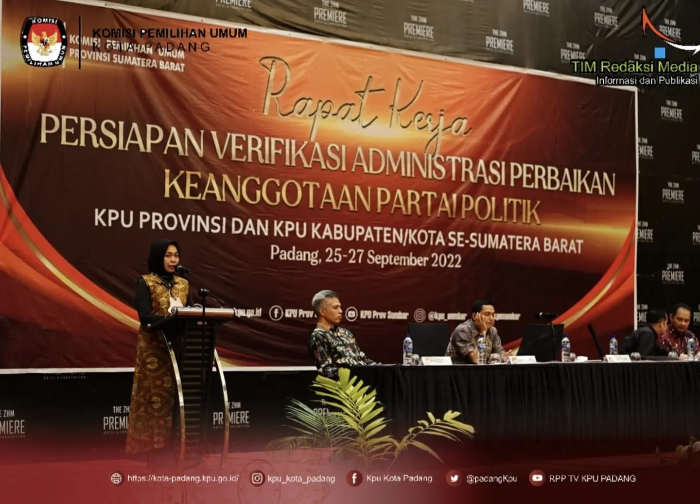 KPU Kota Padang menghadiri Rapat Kerja Persiapan Verifikasi Administrasi Perbaikan Keanggotaan Partai Politik yang diselenggarakan oleh KPU Provinsi Sumatera Barat tanggal 25-27 September 2022. Dihadiri oleh Ketua, Divisi Teknis Penyelenggaraan, Sekretaris, Kasubbag Teknis Penyelenggaraan Pemilu, Partisipasi dan Hubungan Masyarakat dan Operator SIPOL KPU Kabupaten/Kota se-Sumatera Barat. “Kegiatan ini dalam rangka persiapan verifikasi administrasi dokumen persyaratan perbaikan keanggotaan hasil perbaikan oleh KPU Kabupaten/Kota yang akan dilaksanakan pada 1 hingga 9 Oktober 2022 mendatang, saat ini merupakan masa perbaikan dan penyampaian dokumen persyaratan oleh Partai Politik yang berlangsung sejak 15 hingga 28 September,” Kata ketua KPU Provinsi Sumatera Barat Yanuk Sri Mulyani saat membuka Kegiatan. Lebih lanjut Yanuk memberikan apresiasi kepada KPU Kabupaten/Kota se-Sumatera Barat. “terimakasih kepada KPU Kabupaten/Kota se-Sumatera Barat yang telah bekerja keras selama melaksanakan verifikasi administrasi dokumen persyaratan keanggotaan partai politik sehingga dapat berjalan dengan baik,” ungkap Yanuk Dalam rapat kerja ini seluruh KPU Kabupaten/Kota juga menyampaikan daftar inventarisir masalah (DIM) terkait verifikasi administrasi dokumen persyaratan keanggotaan Partai Politik. Adapun aspek yang disampaikan dalam DIM yaitu regulasi, teknis pelaksanaan, aplikasi SIPOL dan sumber daya manusia(SDM). Kegiatan rapat kerja ditutup oleh Anggota KPU Provinsi Sumatera Barat Divisi Teknis Penyelengaraan Pemilu Gebril Daulai. Dalam penutupannya Gebril mengatakan, “tingkatkan koordinasi dan sinergi, bekerja sesuai prosedur dan tepat waktu dengan perubahan-perubahan aturan yang dinamis. Kemudian Helpdesk harus dioptimalkan dan memastikan pelayanan helpdesk berjalan dengan maksimal,” pesan Gebril yang sekaligus menutup acara Rapat Kerja. (iy)
