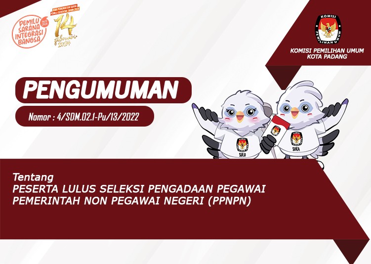 PENGUMUMAN NOMOR: 2/SDM.02.1-Pu/13/2022 TENTANG PESERTA YANG DINYATAKAN LULUS SELEKSI ADMINISTRASI DALAM RANGKA PENGADAAN PEGAWAI PEMERINTAH NON PEGAWAI NEGERI PADA SEKRETARIAT KPU PROVINSI DAN SEKRETARIAT KPU KABUPATEN/KOTA DI PROVINSI SUMATERA BARAT TAHUN 2022