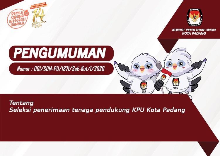 Pengumuman seleksi penerimaan tenaga pendukung KPU Kota Padang Jumat, 03 Januari 2020 00:00 781 Pengumuman seleksi penerimaan tenaga pendukung KPU Kota Padang || LIHAT DISINI || Baca Selengkapnya
