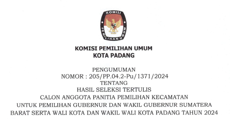 PENGUMUMAN HASIL SELEKSI TERTULIS CALON ANGGOTA PANITIA PEMILIHAN KECAMATAN Kamis, 09 Mei 2024 13:00 600 PENGUMUMAN || LIHAT DISINI || Baca Selengkapnya